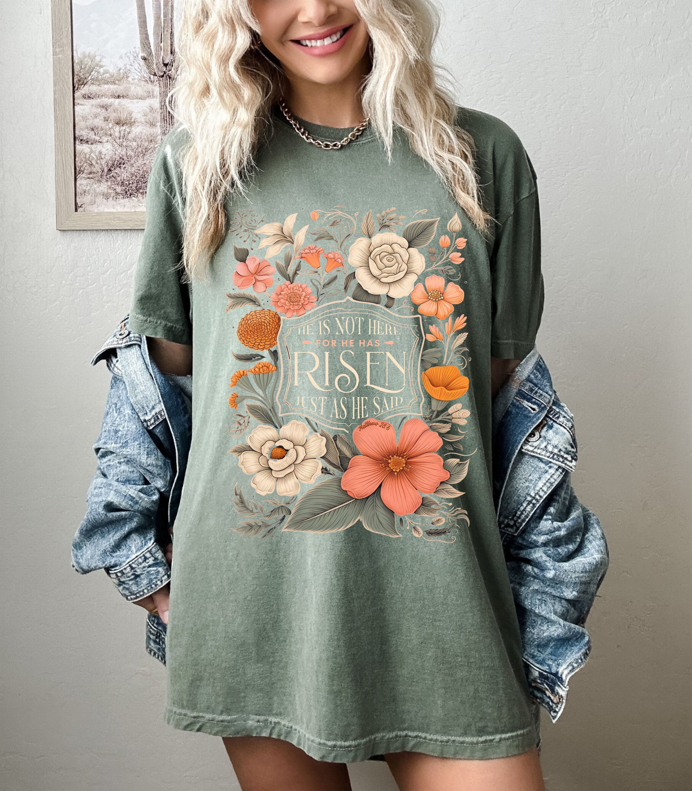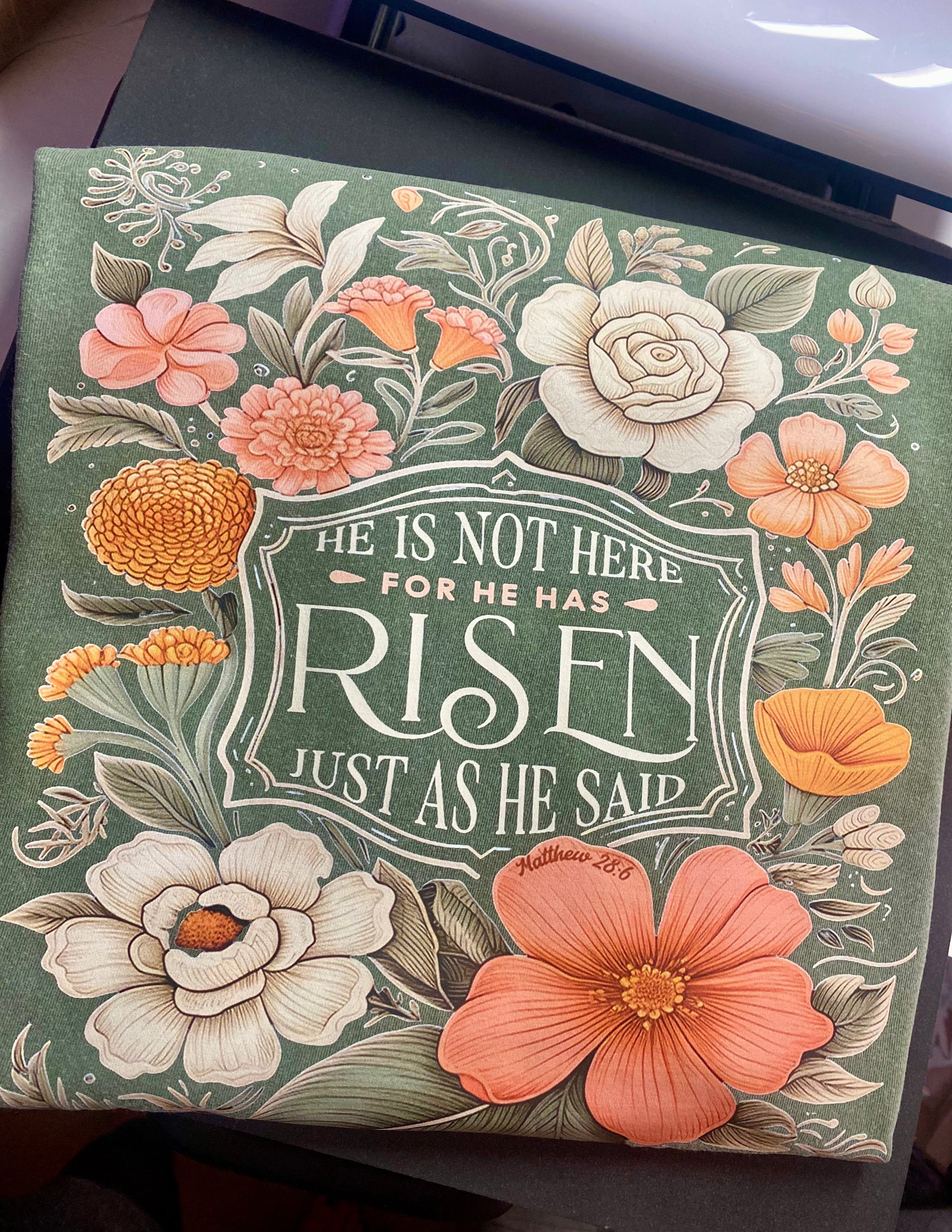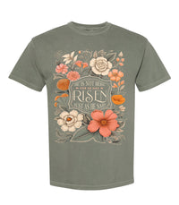 He Has Risen Floral Comfort Colors Tee - Moss